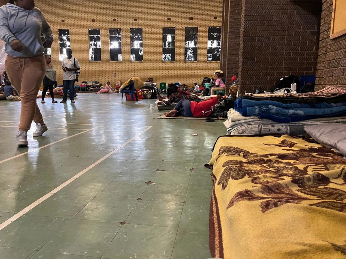 Displaced residents are sheltering at an overcrowded community hall with limited privacy and health concerns after fleeing zama zamas and living are Randfontein community hall